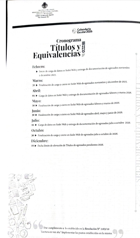 Dada la Resolución 07/26 MECCyT, referida al Calendario escolar 2026, tienen tiempo de presentar la documentación para gestionar su título, en la oficina del IES San Fernando Rey, hasta el 25 de marzo de 2026.